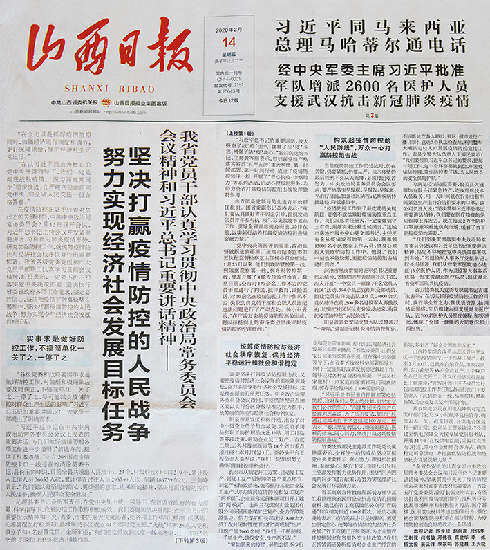 《山西日報》報道西建集團為疫情防控助力捐款100萬,目前已累計捐款達(dá)245萬