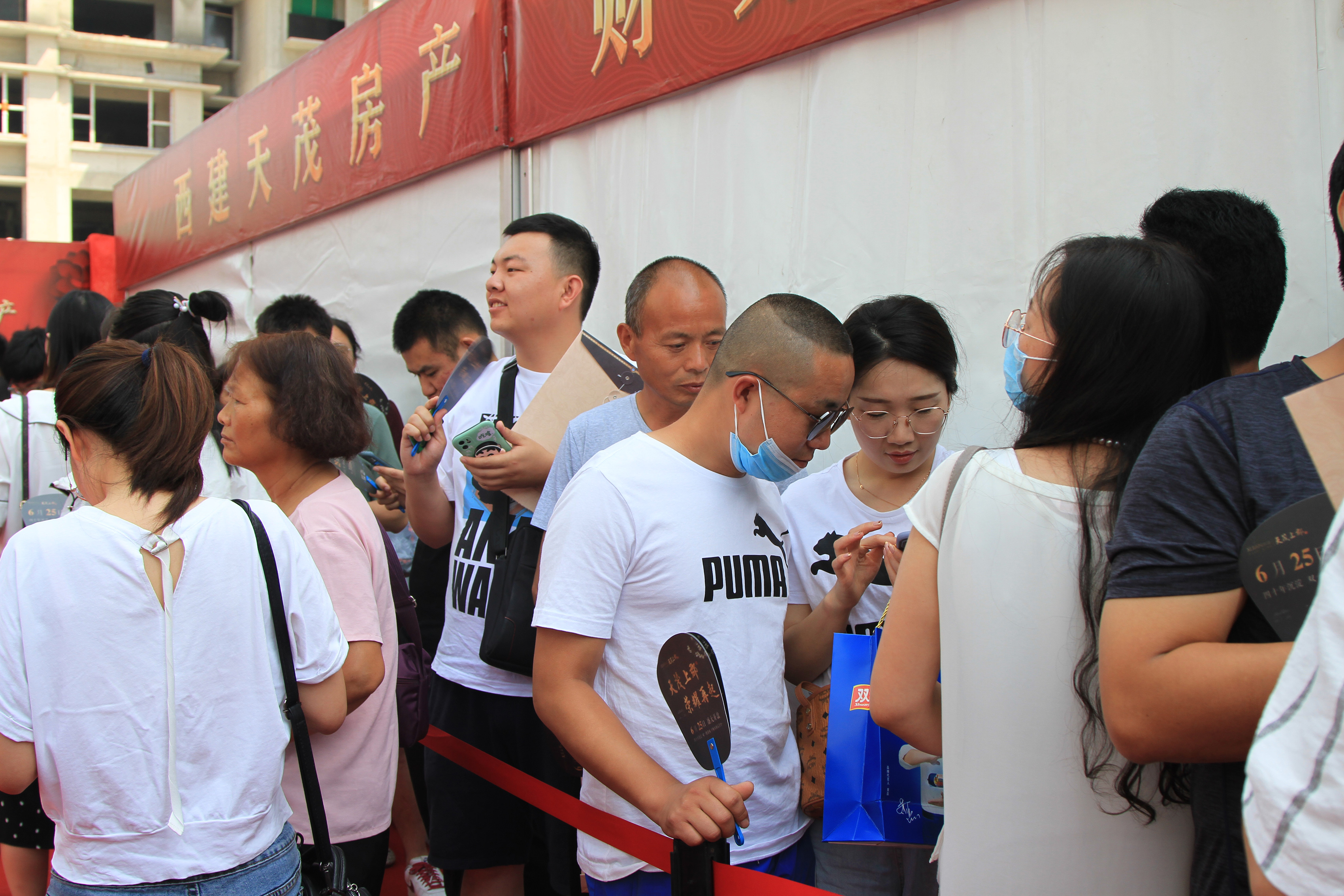 雖然天氣炎熱,但依然抵擋不住大家的熱情,開盤時(shí)間還未到,一支百人服務(wù)大隊(duì)整裝待發(fā),早早守候在天茂上郡中央廣場(chǎng)會(huì)場(chǎng)內(nèi),靜待尊貴的客戶蒞臨。距離開盤還有一個(gè)小時(shí),偌大的會(huì)場(chǎng)早已人聲鼎沸,大家早早趕來生怕與心儀房源失之交臂,眾多購(gòu)房者翹首以盼,焦急地等候開盤儀式,共同見證西建·天茂上郡開盤的盛況。
