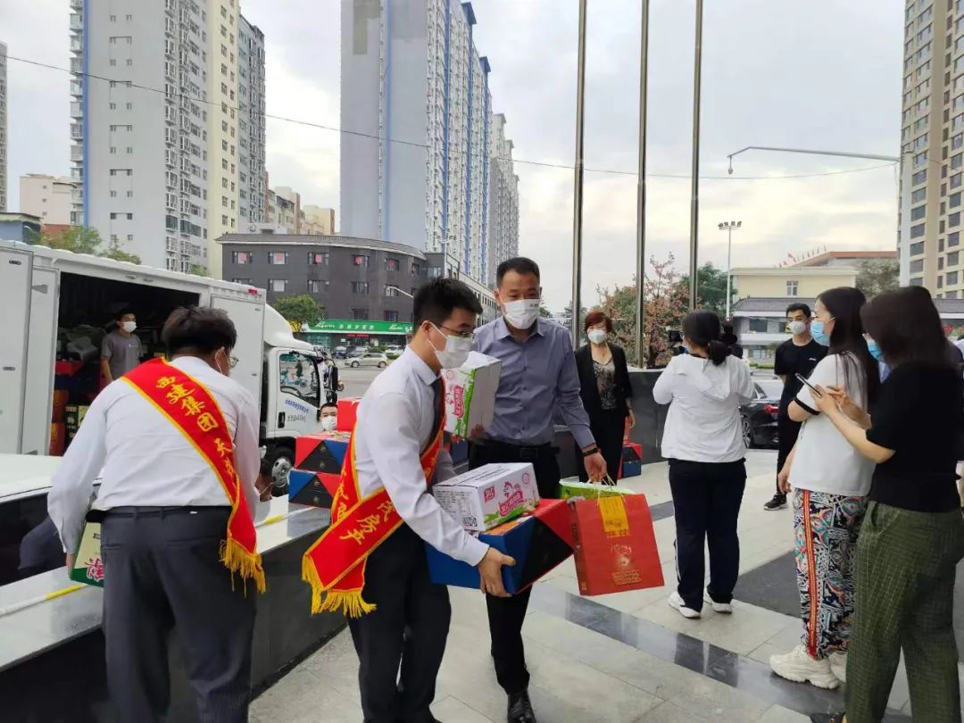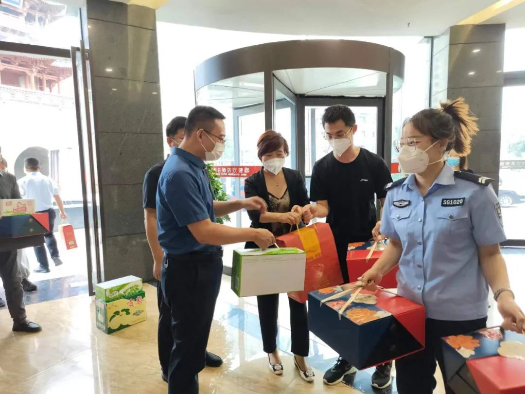9月8日,在中秋佳節(jié)來臨之際,鹽湖區(qū)副區(qū)長霍國榮,鹽湖區(qū)政協(xié)副主席馬紅琴及西建集團天茂房產(chǎn)總經(jīng)理劉忠森,深入11個隔離酒店,為因疫情防控無法歸家團圓的工作人員送去價值近5萬元的防疫慰問品,在闔家團圓的時刻,為他們送上最真摯的溫情。