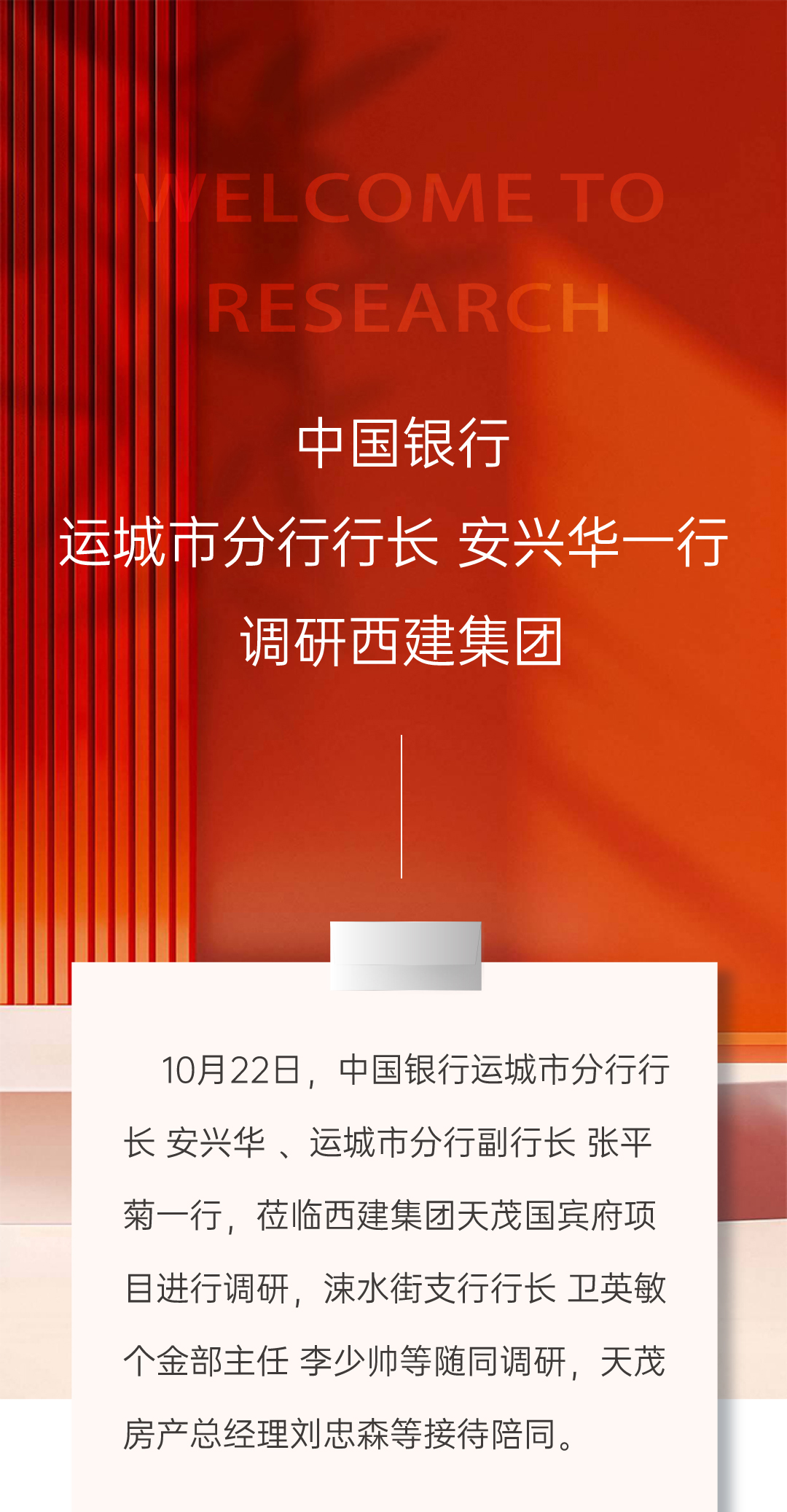 中國銀行運城市分行行長安興華一行調(diào)研西建集團